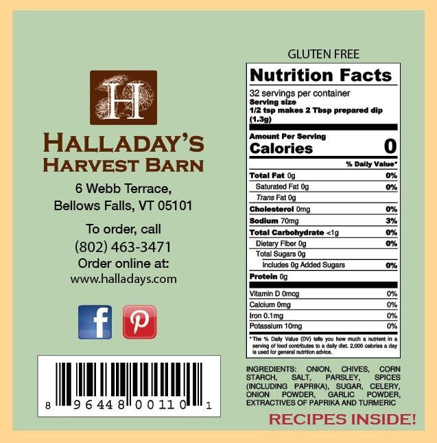 Onion, Chives, Cornstarch, Salt, Parsley, Spices (Including Paprika), Sugar, Celery, Natural Flavors, Onion, Garlic, Turmeric, Paprika