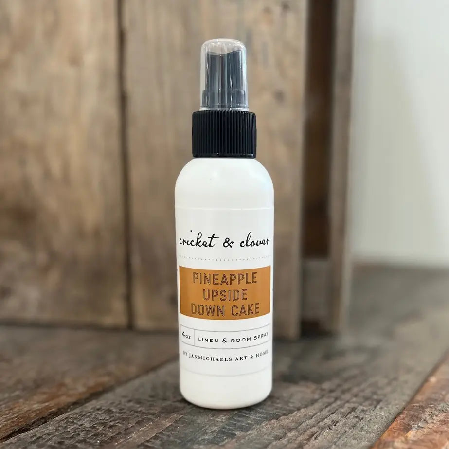 Scent Note Profile: Top Note: Pineapple, Sugar, Buttercream Middle: Cream, Honey Base: Vanilla Linen and Room Spray: Each Cricket and Clover Room and Linen Spray is handmade in small batches in Lancaster, PA. Freshen up any room or linen with our handmade scents. This is just one more way of enjoying our preferred candle aromas, but in a flameless way. A burst of freshness is guaranteed with each spray from the 4oz bottle.