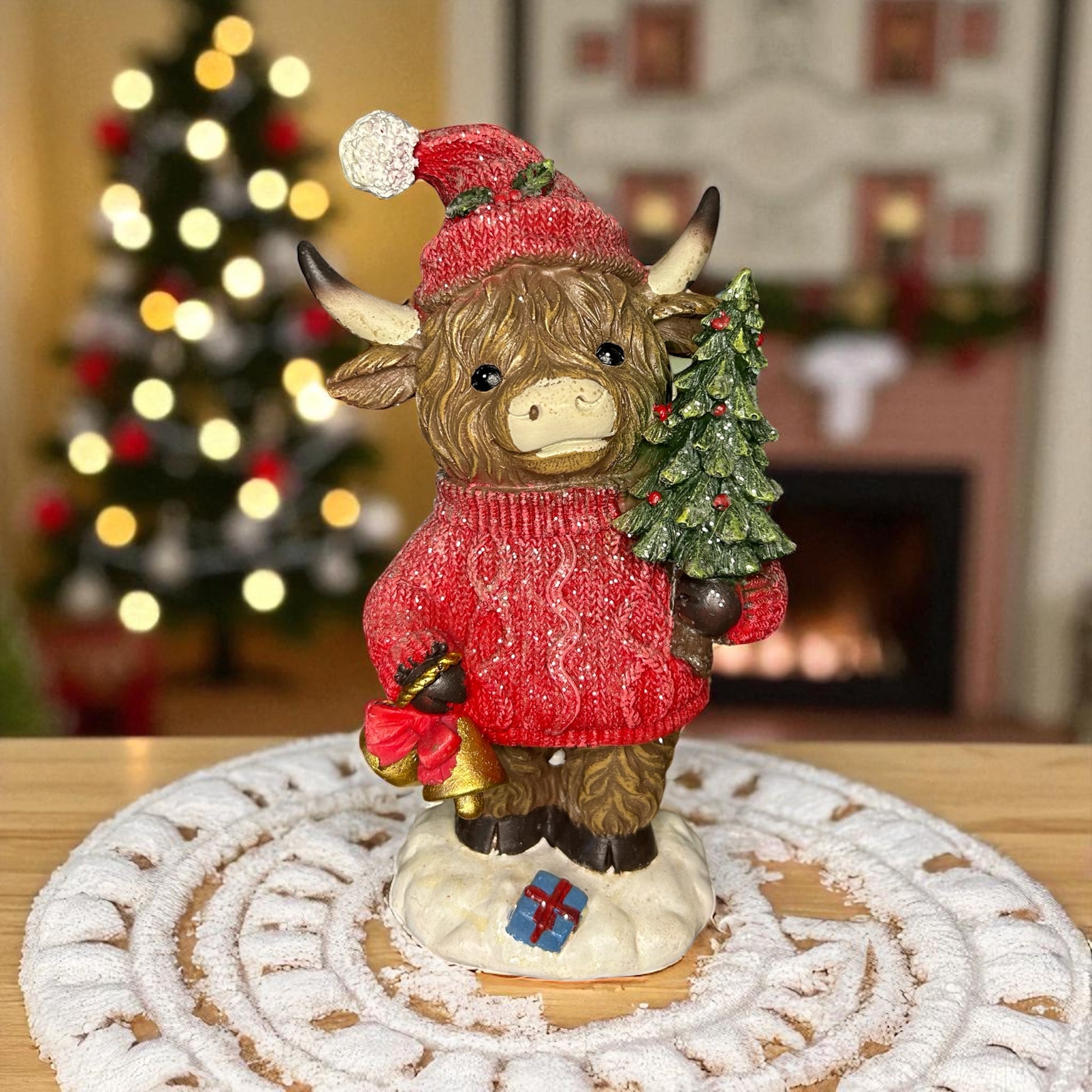 - Item Description: 8.2"H Resin Holiday Highland Cow